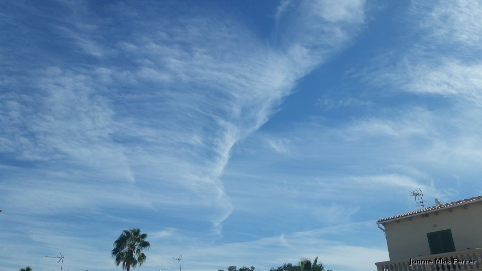 Diferentes tipos de Cirrus, a la izquierda podemos observar Cirrocumulus Floccus y en el centro Cirrus vertebratus, y en la parte inferior de la imagem Cirrus Fibratus, dia 25-09-2015.