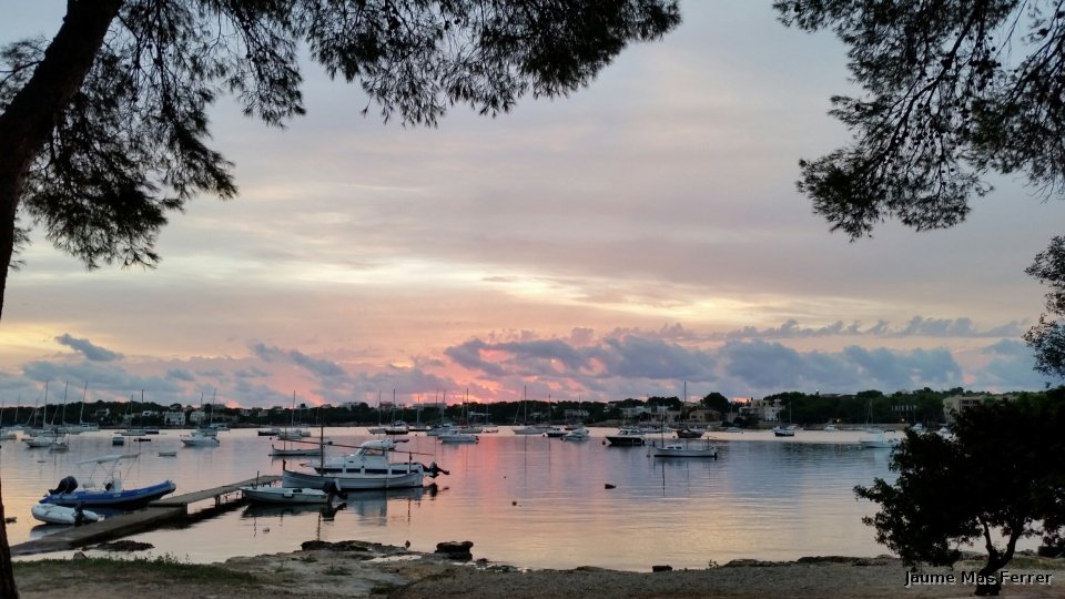 Asi amanece una dia de Septiembre en Portocolom, un dia tranquilo con algunas nubes de tipo alto y nubes bajas en el horizonte, dia 27-09-2015.