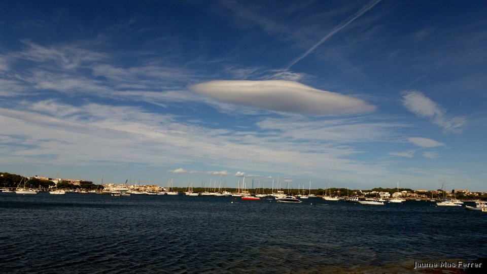 Tarde soleada con nubes medias y altas y viento de poniente, temperatura casi veraniega 28º C.