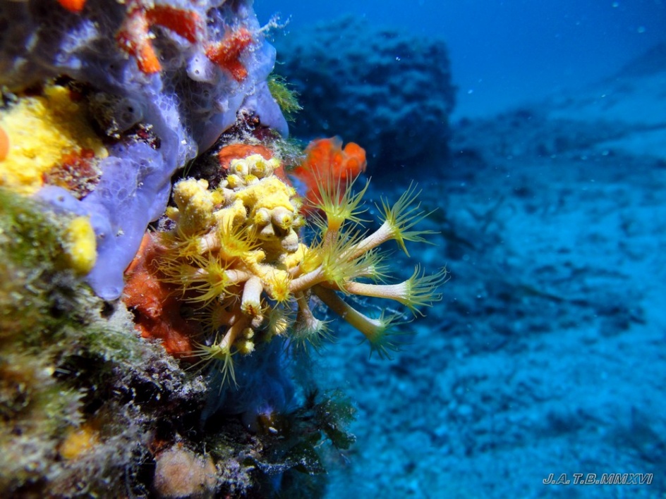 Bienvenido / Fotografias Submarinas / Fotografías Submarinas de Juan A. Torres / GRUPO DE ANEMONAS AMARILLAS -36,00M