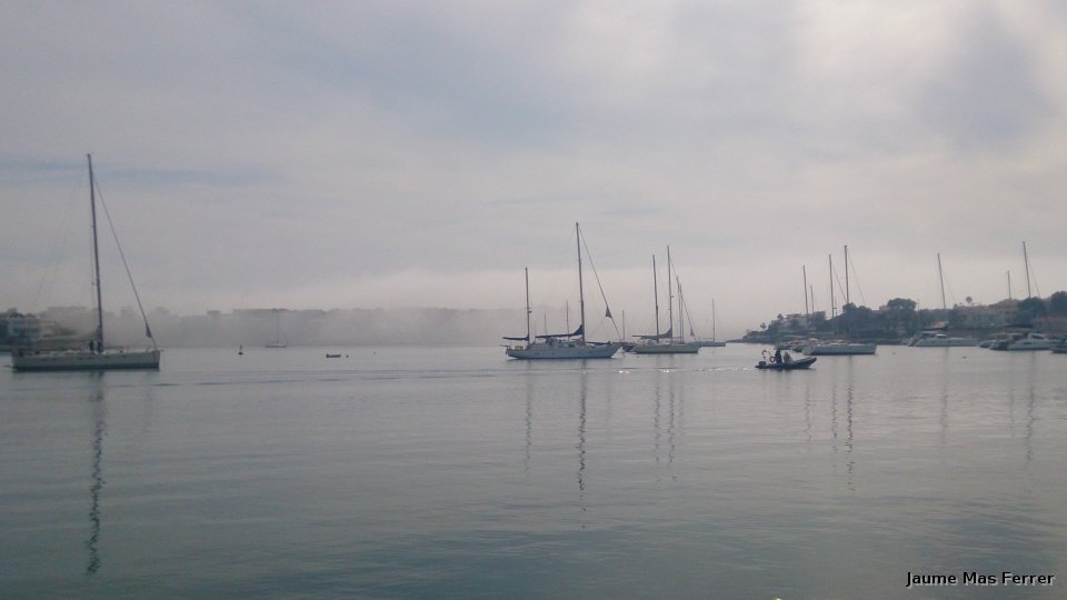 Mar tranquila i boira dins a port de Portocolom, dia 12-03-2015