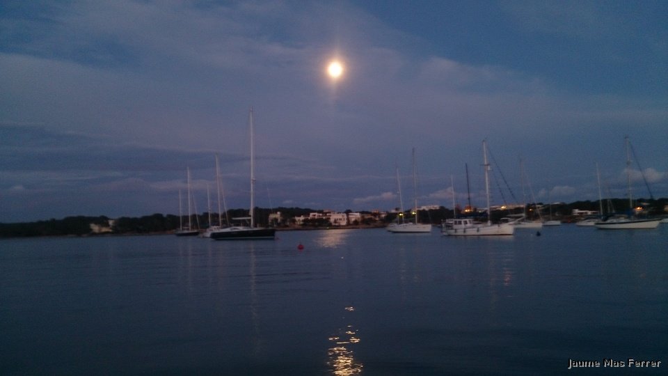 Luna Llena de dia 02-02-2015 en Portocolom reflejada por el mar.