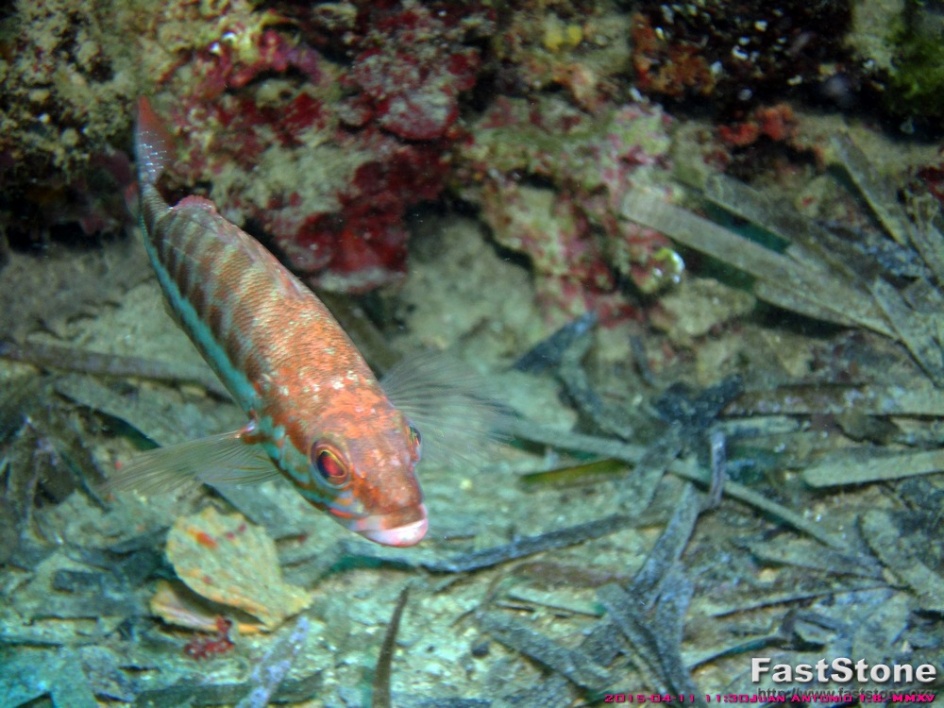 Pertenece a la familia de los serranidos, suelen vivir a distintas profundidades el de la foto esta a-34,00m en un fondo de rocas y arena son cazadores y se alimentan de pequeños peces y crustáceos.