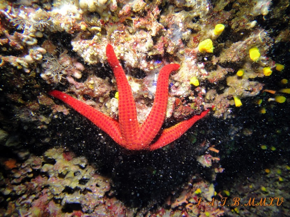 Bienvenido / Fotografias Submarinas / Fotografías Submarinas de Juan A. Torres / ESTRELLA DE MAR EN EL TECHO DE UNA CUEVA